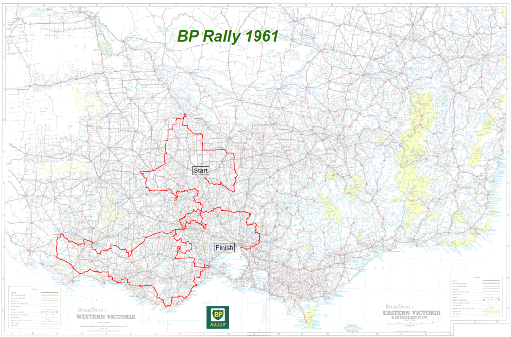 Crews assembled at Bendigo for the Trial Stage after a “circuitous” according to one scribe, briefing from the organisers, which even included a colour slide show from John Pryce of very vague and rugged tracks.