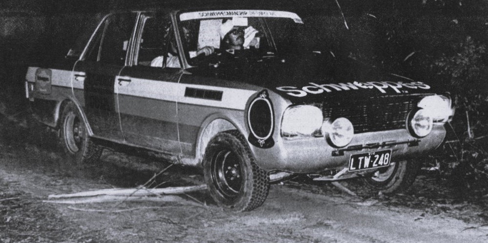 The following section included a rough crossing of the Tambo River, where Harrowfield and Boyd stamped their mark on the rally, and were the only clean sheeters. But the stage saw misfortune strike the Datsun camp when Watson slipped off on a muddy right hander. The next car was Armitage and Kilfoyle who did likewise, but were able to get themselves out fairly quickly. Then Fury arrived, slamming into the back of Watson’s stricken 180B, damaging Fury’s front end, lights and electrics, and causing his retirement.
